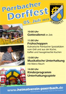 Beim diesjährigen Pörrbacher Dorffest kamen alle ins Schwitzen. Bei Temperaturen über 35 °C wurde es den Festbesuchern auch ohne Hüpfburg und Bogenschießen heiß. Abkühlung versprachen die von den vielen Helfern angebotenen gekühlten Getränke, so dass es sich im Schatten unter den zahlreichen Schirmen bei Pörrbacher Spezialitäten aus der Küche und der Kuchentheke aushalten ließ. Am …